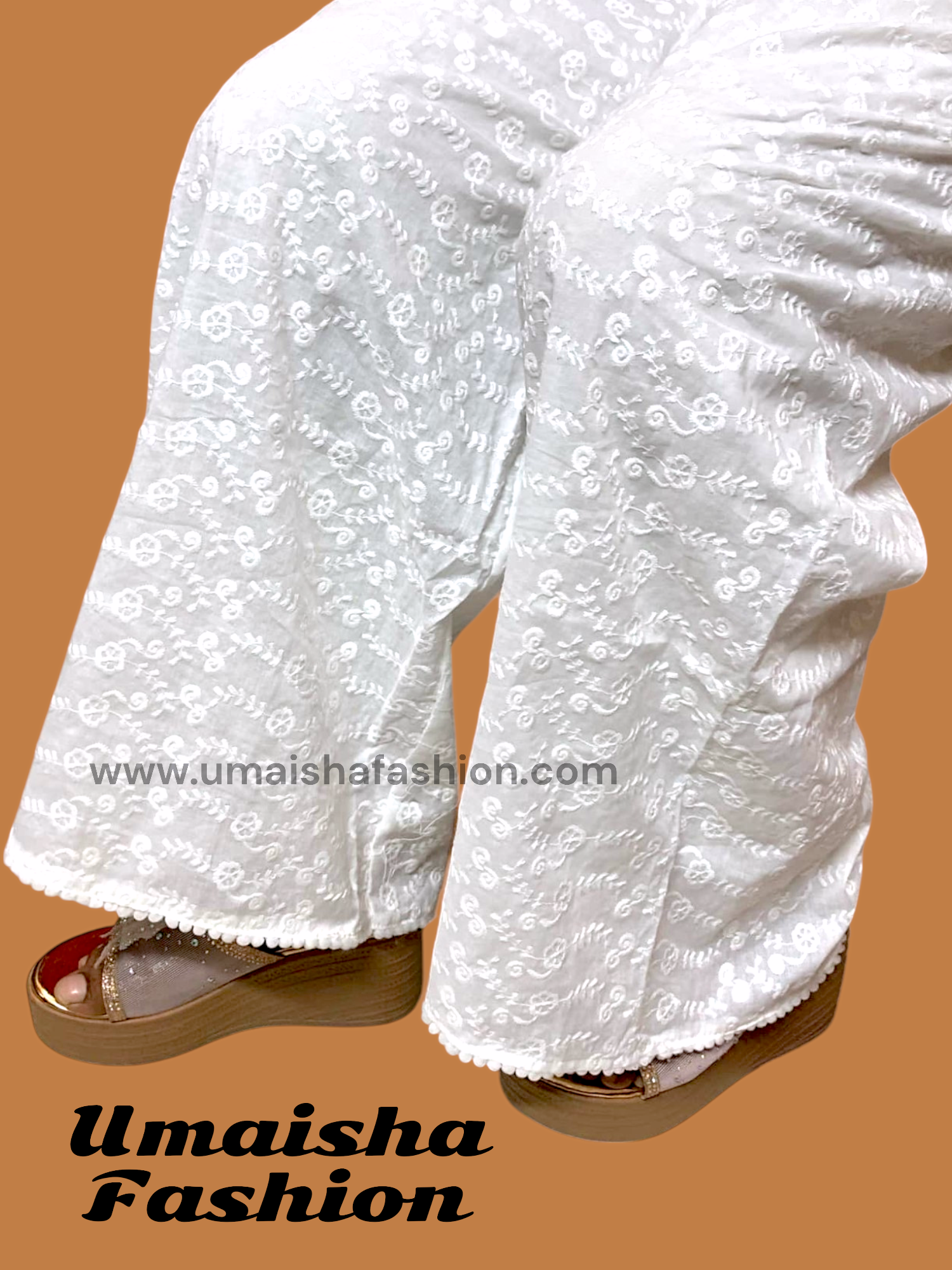 - চিকেন পুরোটা সুতির ফুল বডি অ্যামব্রয়ডারি কাজ করা সালোয়ার প্লাজো পাজামা প্যান্ট ।