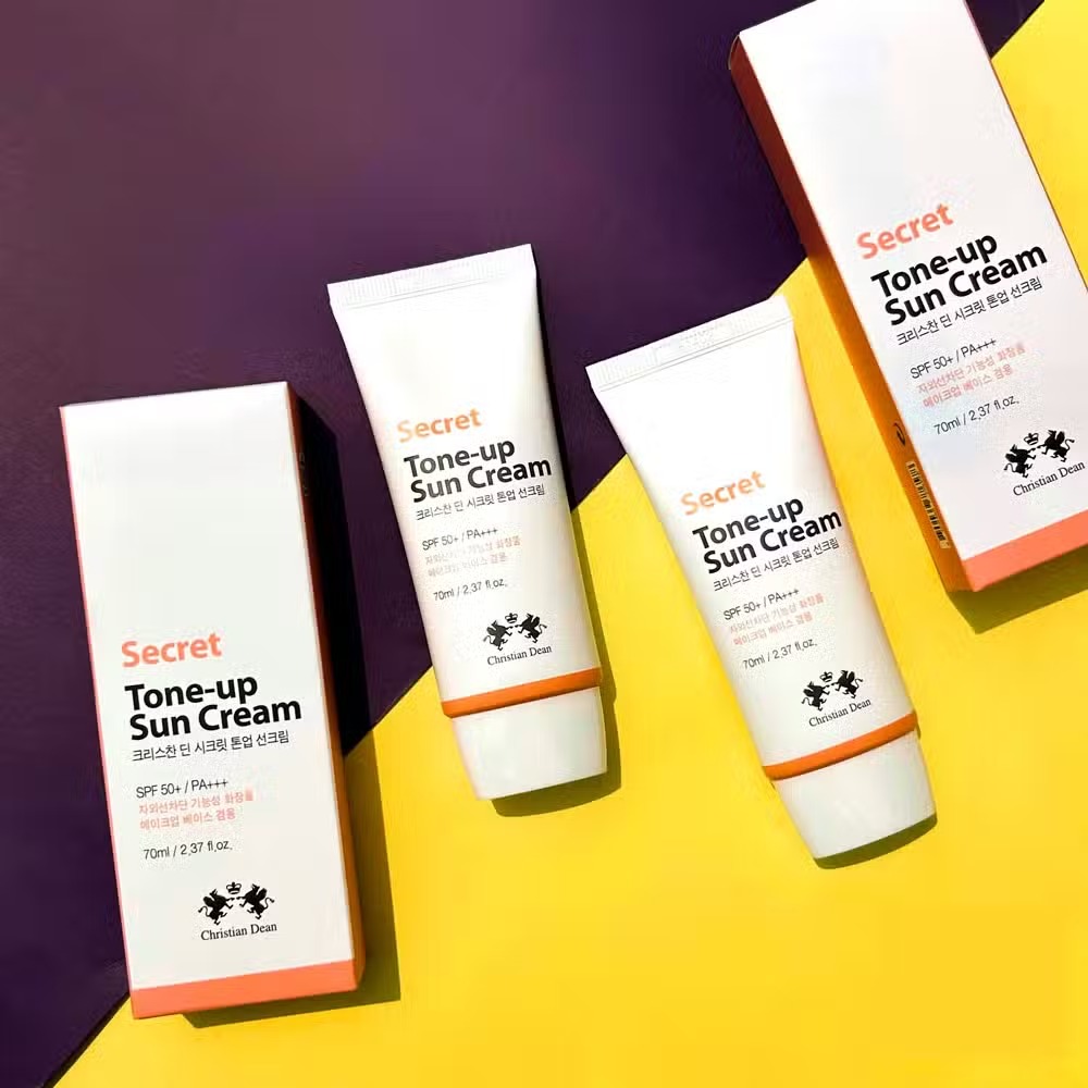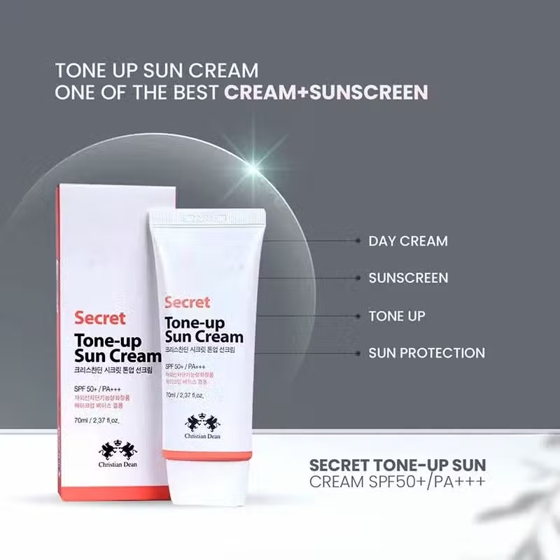 Christian Dean Secret Tone-Up Sun Cream is a premium multi-functional sunscreen that provides high protection (SPF 50 PA+++) while instantly brightening and evening out skin tone. This lightweight, non-greasy formula offers UV defense, tone-up correction, and moisturization in one step—perfect for daily sun protection with a radiant finish.