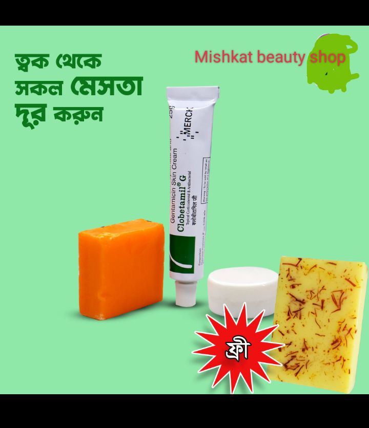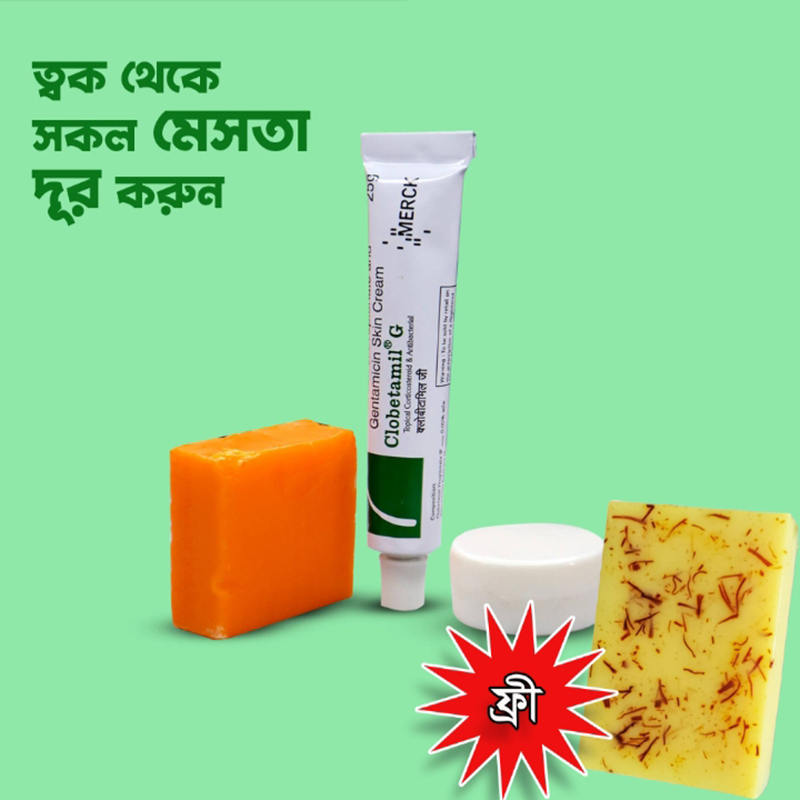 Clobetamil-G Skin Care Cream Combo একটি অত্যন্ত কার্যকর স্কিনকেয়ার সমাধান যা একটি বিলাসবহুল হ্যান্ডমেড জাফরান সাবানসহ আসে। Clobetamil-G ক্রিম বিভিন্ন ত্বকের সমস্যার জন্য তৈরি, যেমন লালভাব, জ্বালা এবং বিবর্ণতা দূর করতে সাহায্য করে, যা ত্বককে মসৃণ এবং সুষম করে। বিনামূল্যে হ্যান্ডমেড জাফরান সাবান প্রাকৃতিক জাফরান নির্যাসে সমৃদ্ধ, যা ত্বক উজ্জ্বল করতে এবং প্রাকৃতিক গ্লো বৃদ্ধি করতে সহায়ক। এই কম্বো একটি উজ্জ্বল এবং স্বাস্থ্যকর ত্বকের জন্য সম্পূর্ণ স্কিনকেয়ার রুটিন প্রদান করে।