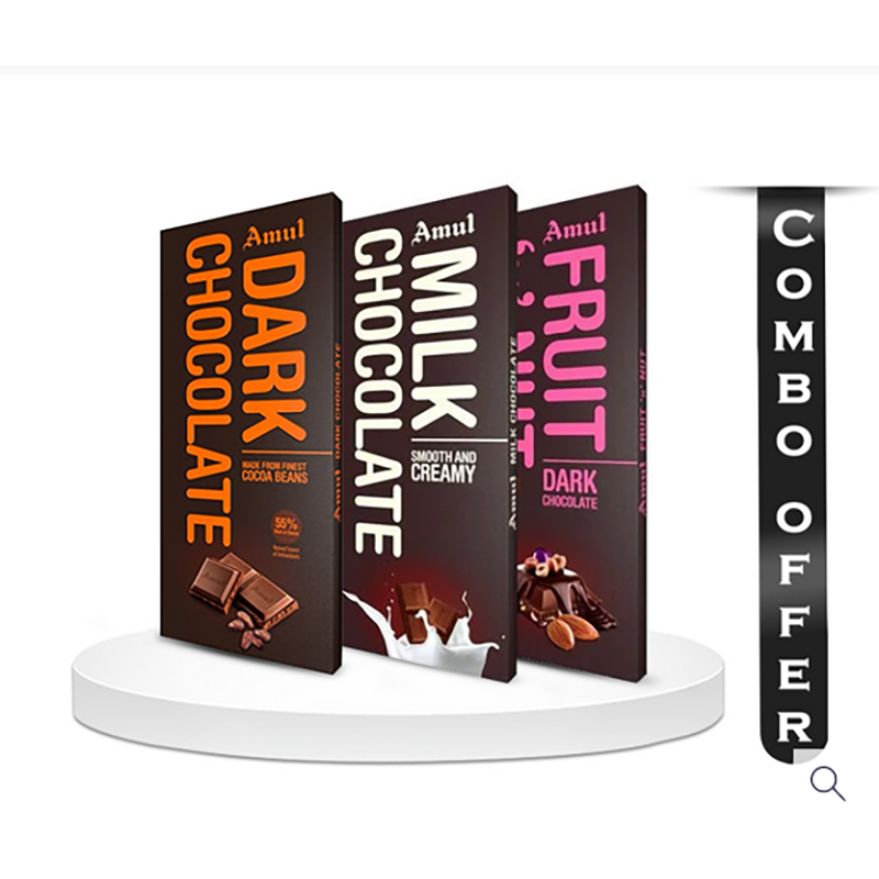 Combo of Amul Dark, Milk, Fruit N Nut Chocolate - 150 gm pack of 3