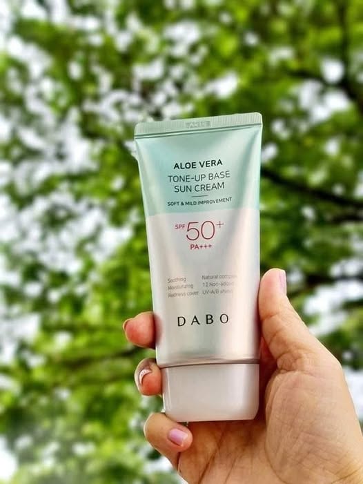 The Dabo Aloe Vera Tone-Up Base Sun Cream SPF50+ is a Korean sunscreen designed to provide high sun protection while offering a subtle brightening effect. Its formulation includes aloe vera extract, known for its soothing and hydrating properties, making it suitable for various skin types, including dry and sensitive skin.