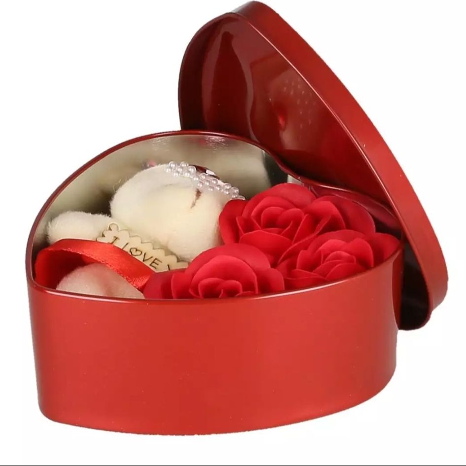 হার্ট শেপ গিফট বক্স (নরম টেডি সহ ফুল)