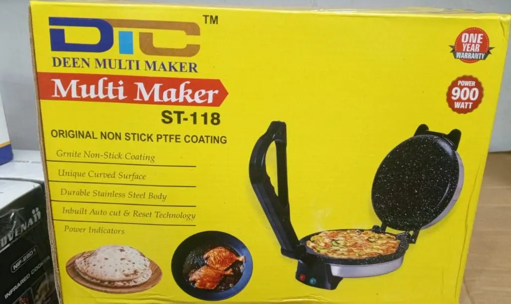 This is an 8.5-inch diameter electric “multi-maker” appliance designed for home kitchens to make rotis, flatbreads and similar items more easily. It’s built for convenience: simple to use, fast-heating, non-stick surface and compact design.