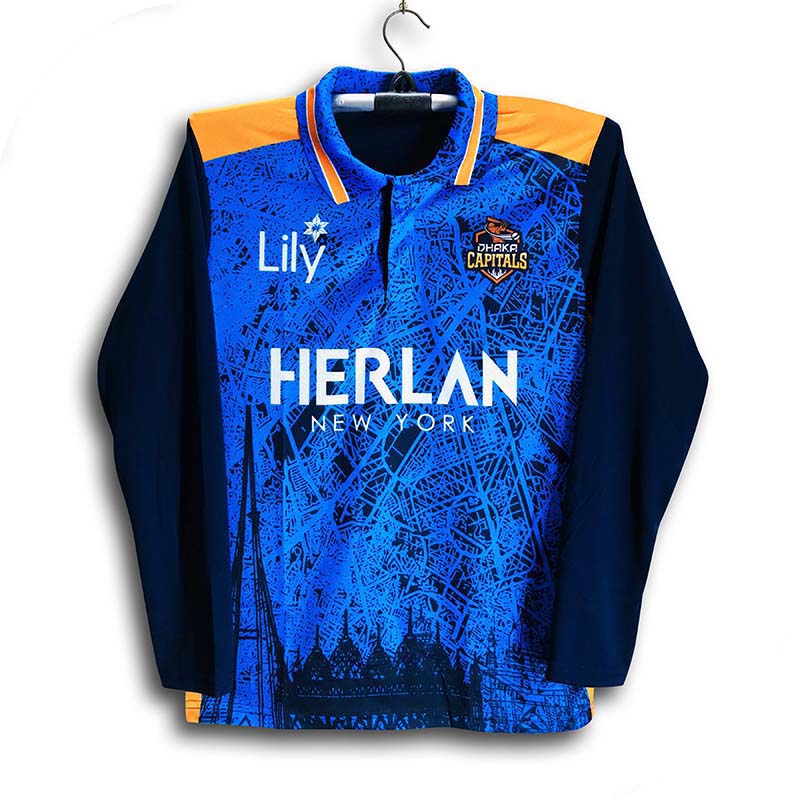 Dhaka Capaitals Full Sleeve Polo Cricket Jersey For Men - BPL Long Sleeve Collar Polo Jersey - Dhaka Jersey 2026
