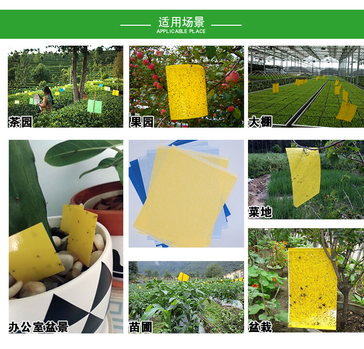 Most of the pests have phototaxis, and yellow is the favorite color of common pests like aphids, leaf miner, fungus gnats, trips, whiteflies, black flies, fruit flies, midges and so on, with this yellow sticky trap, pests just can not control themselves and keep flying towards it.