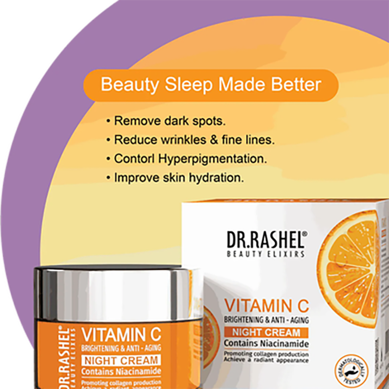 Product❤️ Description: Dr❣️. Rashel Vitamin C Anti-Aging and Whitening Night Cream is a powerful skincare solution enriched with Vitamin C and other natural ingredients. This cream helps to brighten skin tone, reduce the appearance of fine lines, and improve skin elasticity while you sleep. The antioxidant-rich formula repairs skin damage caused by pollution, UV rays, and aging, leaving your skin soft, glowing, and rejuvenated.
