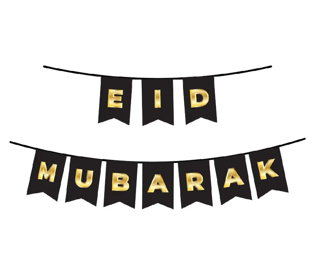 EID Mubarak Card Banner Black and Golden High Quality Material Easy to use Suitable for Eid Mubarak party decoration