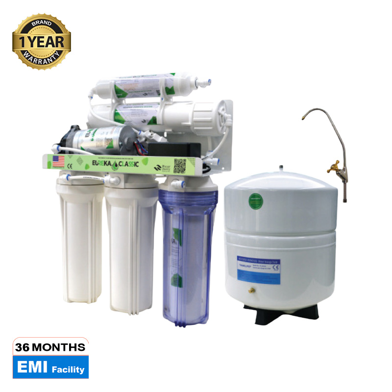 The Eureka Classic 5 Stage 75 GPD RO Water Filter is a reverse osmosis water filtration system that uses five stages of filtration to remove impurities from water. It can produce up to 75 gallons of filtered water per day, making it an ideal choice for small to medium-sized households. The system is easy to install and maintain, and it comes with a 1-year warranty.