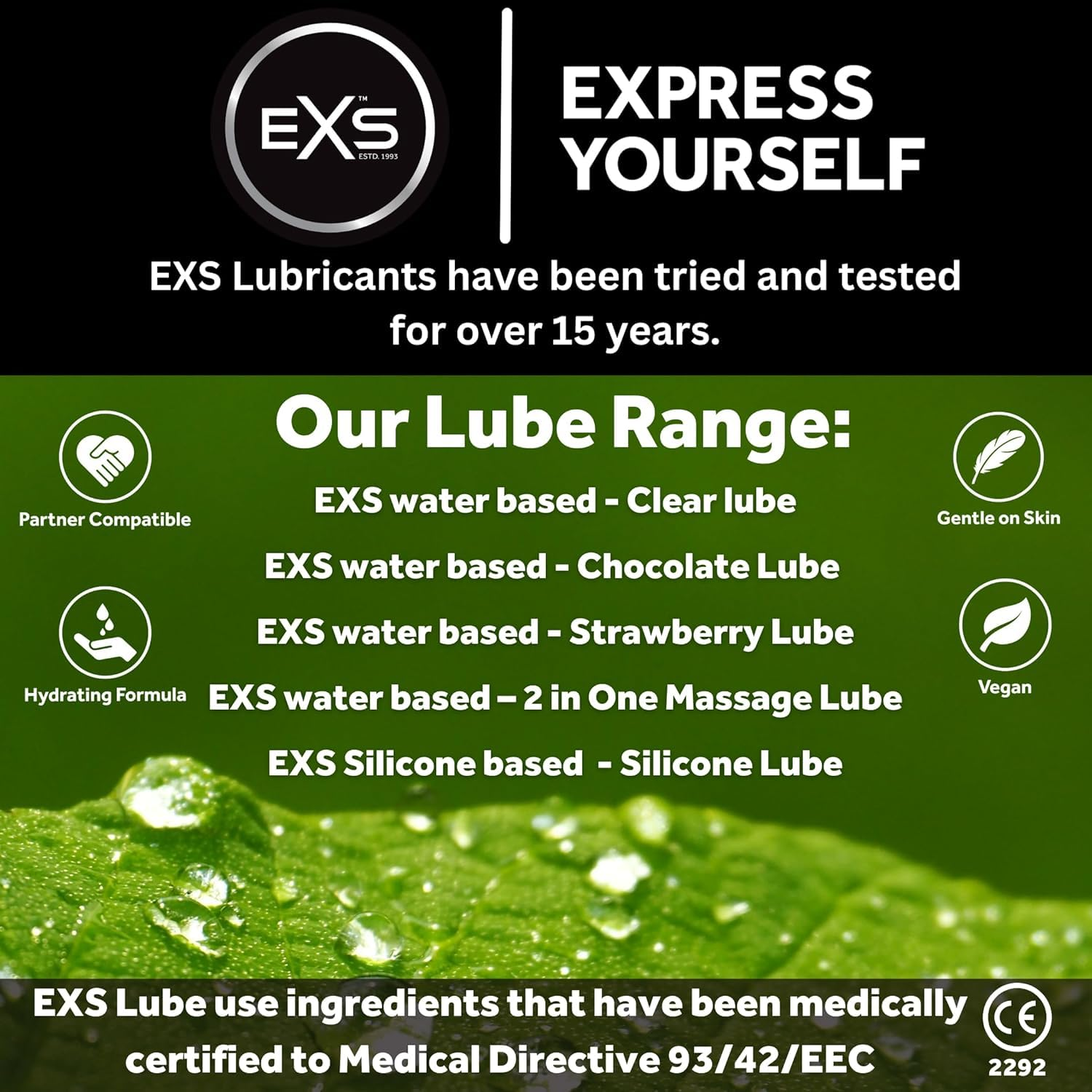 - Upgrade your sexual experiences with EXS Premium Strawberry Lube Gel, designed to help eliminate symptoms of genital dryness during sex. This water based lubricant provides soft and gentle lubrication, a subtle strawberry flavour, all whilst also being gentle on your skin.