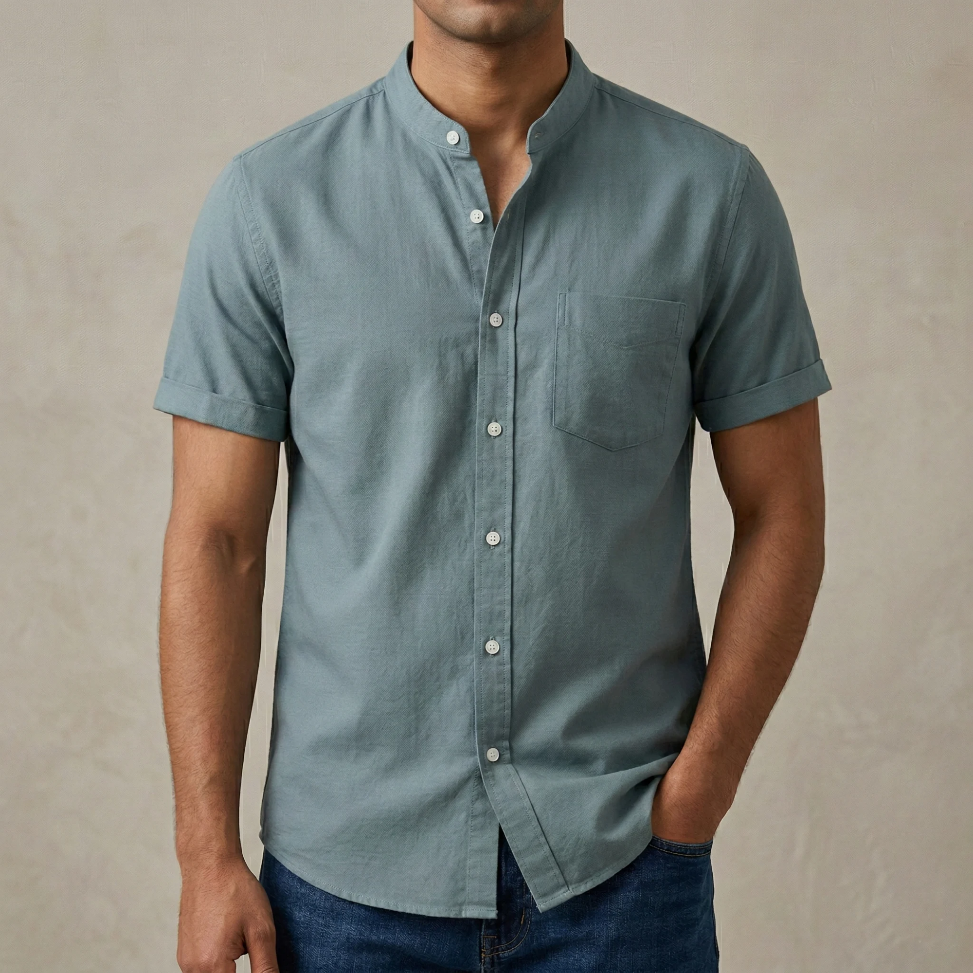 Fashionable casual half-sleeve shirt for menFabrics: Oxford cottonSize Measurement :M = length   28", chest 39"L = length   29", chest 41"XL = length   30", chest 43"XXL = length   31", chest 45"