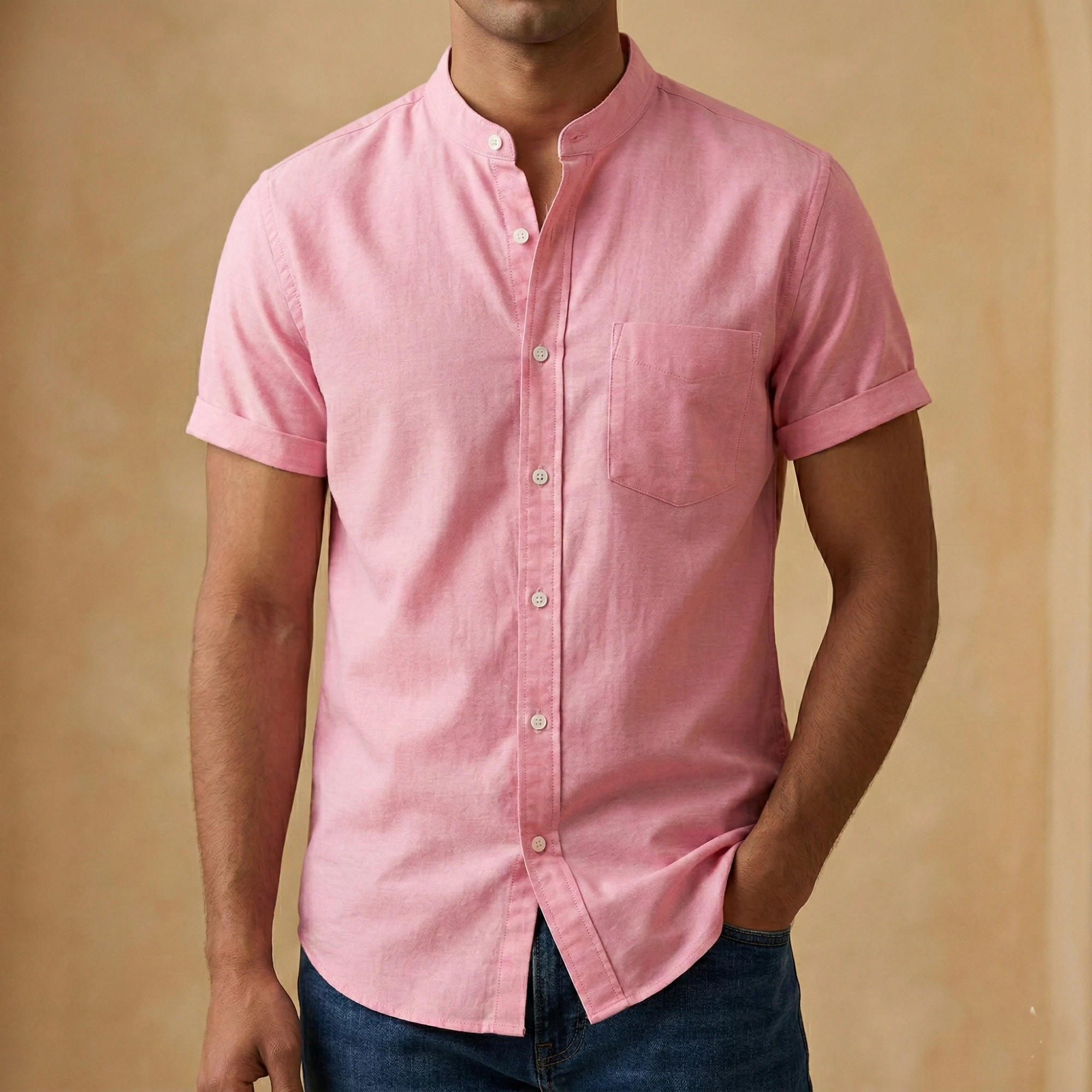 Fashionable half-sleeve shirt for men ( Pink )