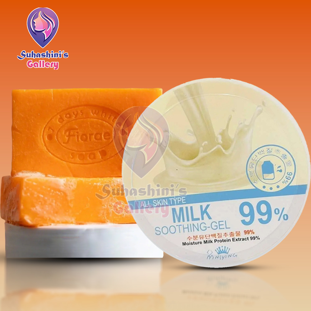 Fiorae Papaya & Milk Skin Care Combo হল এমন একটি শক্তিশালী স্কিনকেয়ার সেট যা আপনার ত্বক উজ্জ্বল ও পুষ্টিযুক্ত করতে সহায়তা করে। পেঁপে নির্যাস এবং দুধের পুষ্টিগুণে সমৃদ্ধ এই সেটটি মৃত ত্বক দূর করে, ত্বকের টেক্সচার উন্নত করে এবং গভীর থেকে আর্দ্রতা প্রদান করে। পেঁপে প্রাকৃতিক এক্সফোলিয়েটর হিসেবে কাজ করে, আর দুধ ত্বককে কোমল ও উজ্জ্বল রাখে। নিয়মিত ব্যবহারে এটি সমান টোনের উজ্জ্বল ত্বক পেতে সহায়তা করে। সব ধরনের ত্বকের জন্য উপযোগী।