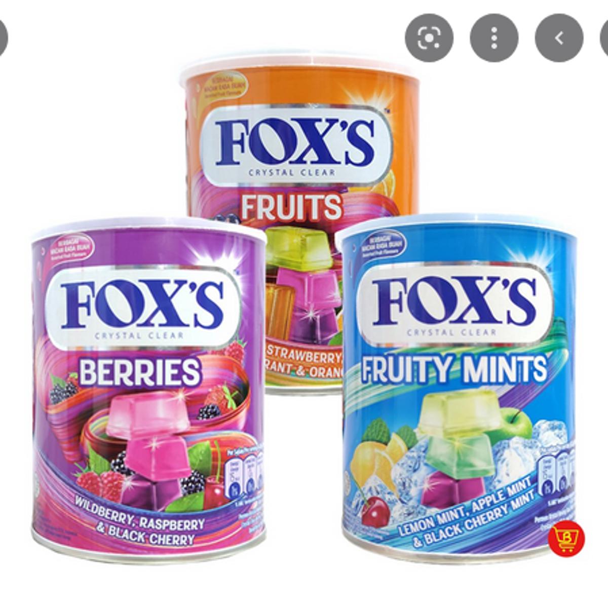Flavors: - Fruits - Mints - Berries - Fruity Mints - Passion Mints - Spring Tea Net weight: 180g Brand: Fox’s Made in Indonesia