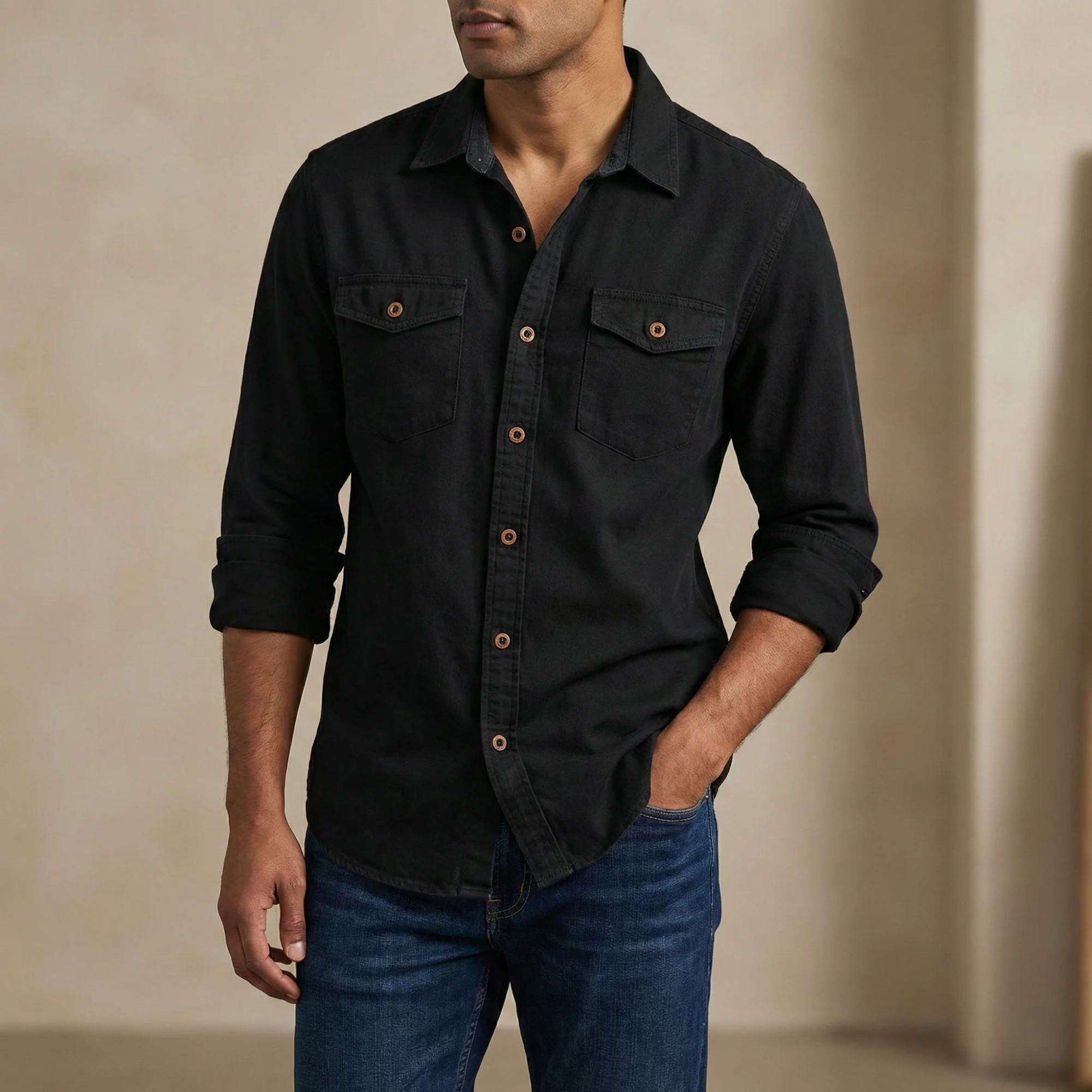 Full sleeves denim washed Shirt Fabric:  Kaizar cottonG.S.M :160+Vary soft & comfortableSize: M,L,XL,XXL Size measurementM = Chest 40", Length 28"L = Chest 42", Length 29"XL = Chest 44", Length 30"XXL = Chest 46", Length 31"