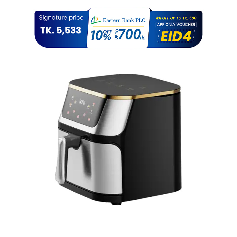 Gazi Smiss 1300W 6.0 Litre Air Fryer (GA-AF-13) with Stainless Steel Surface and Automatic Shut Off Technology and Frying, Advance Touch Control with Seven Pre-set Programs