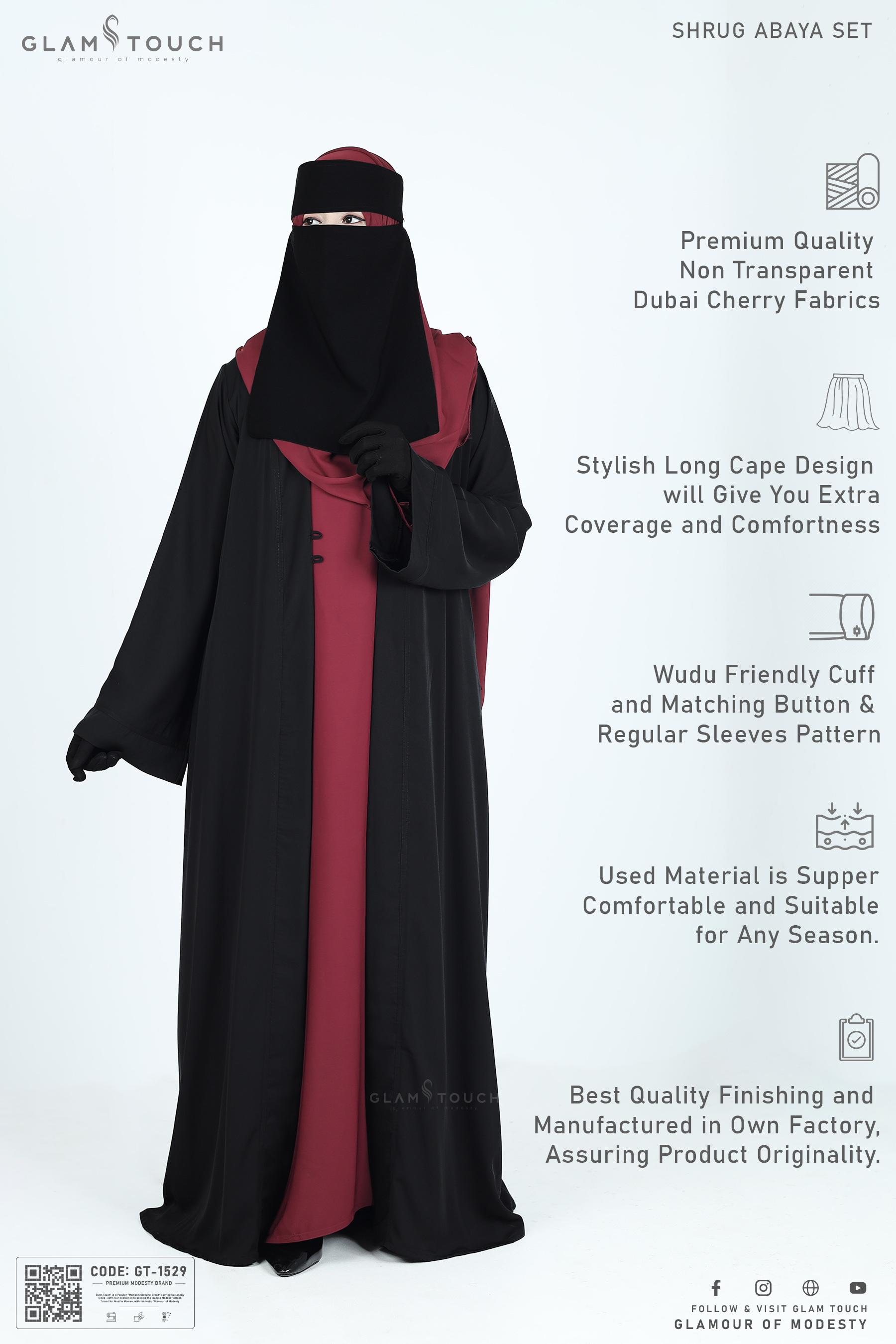 Glam Touch Premium Shrug Abaya 3 Part Set