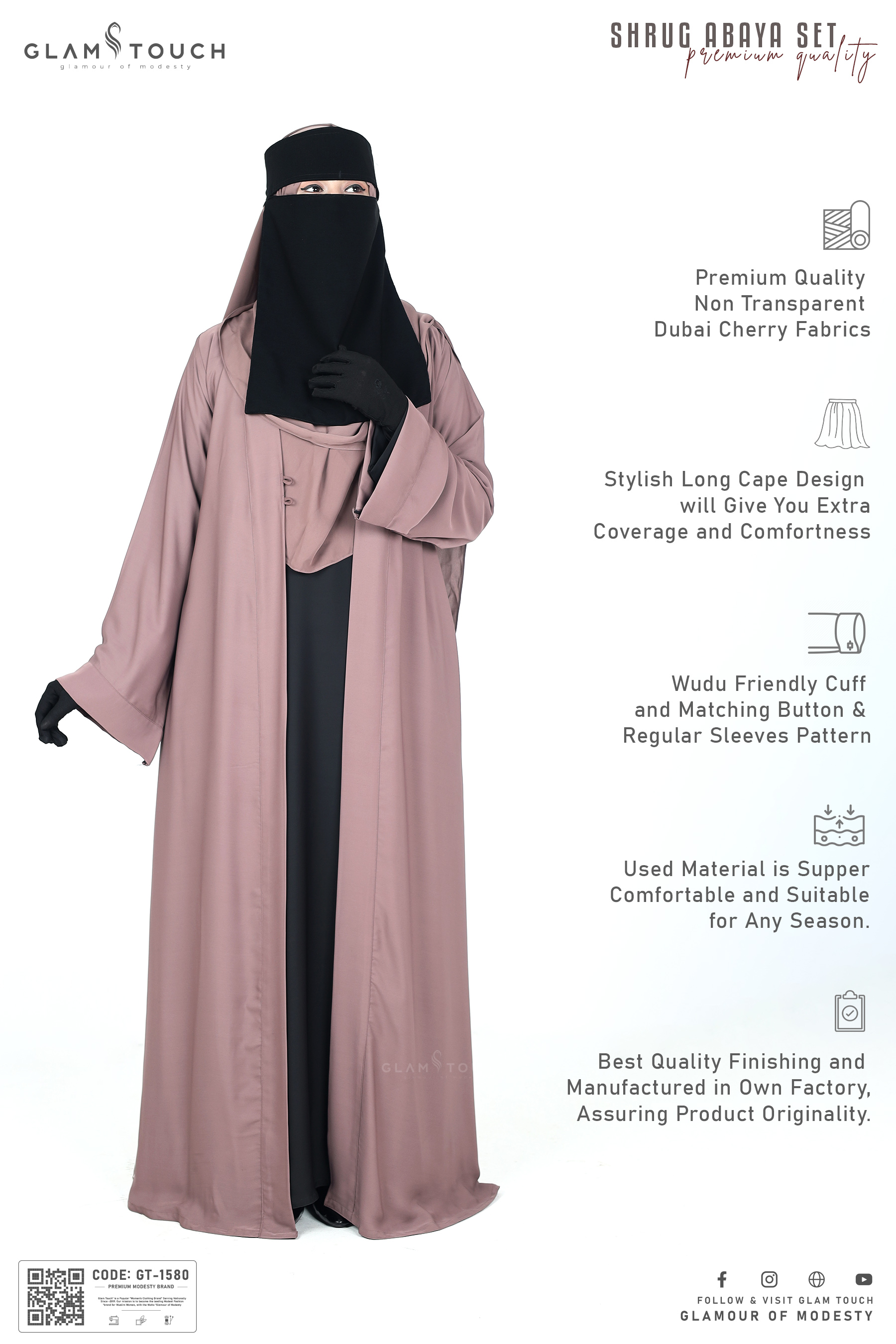 Glam Touch Premium Shrug Abaya 3 Part Set