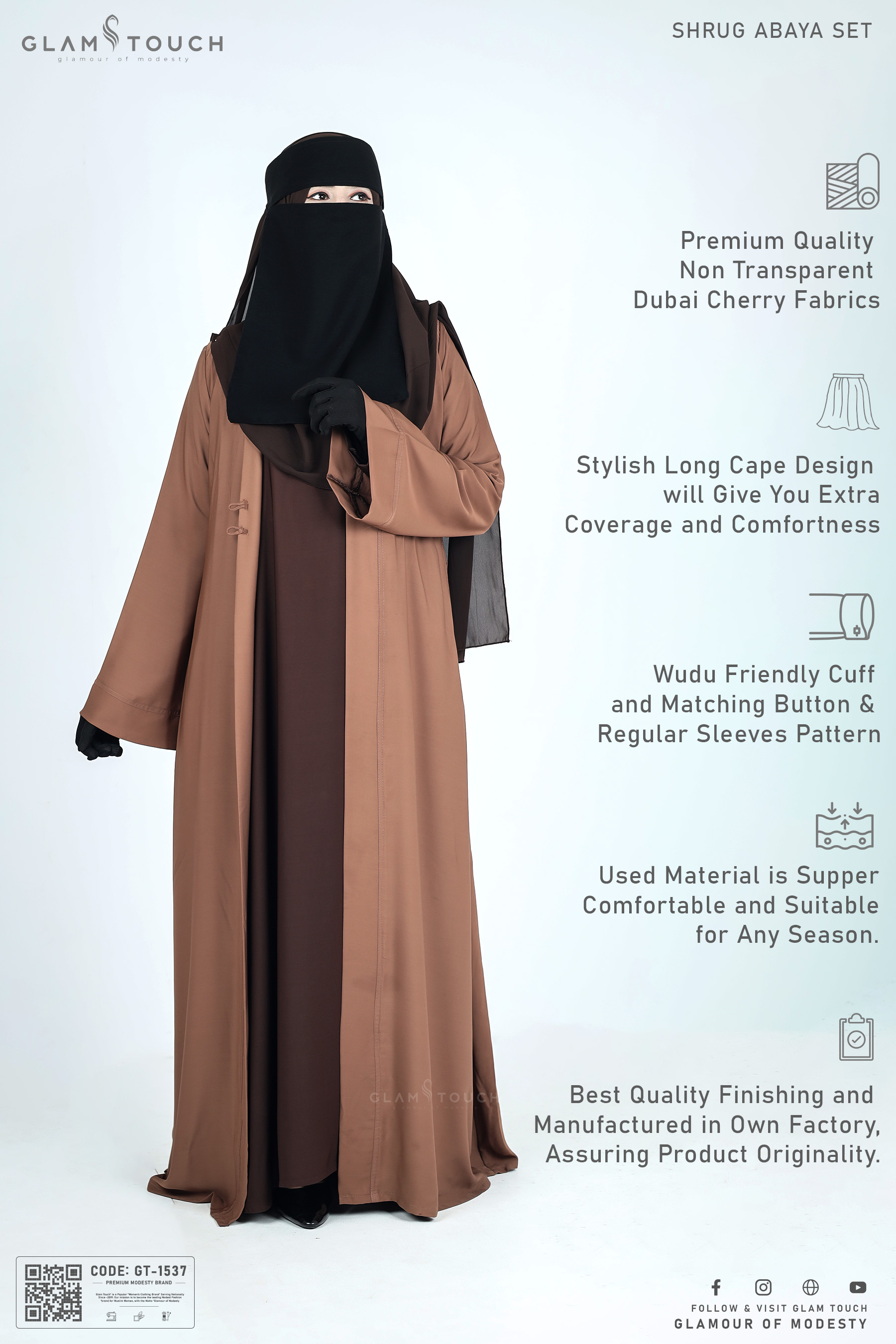 Glam Touch Premium Shrug Abaya 3 Part Set