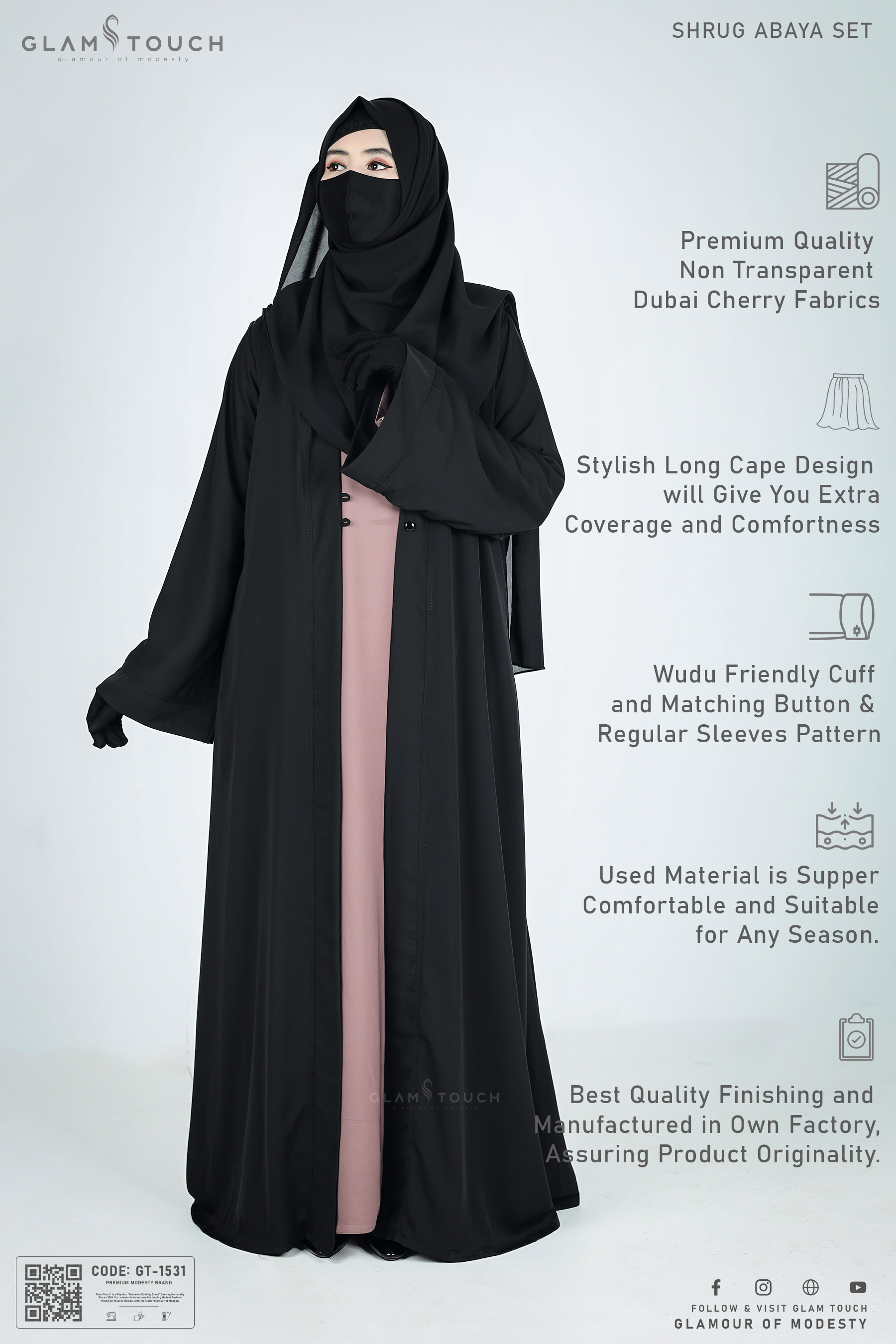 Glam Touch Premium Shrug Abaya 3 Part Set