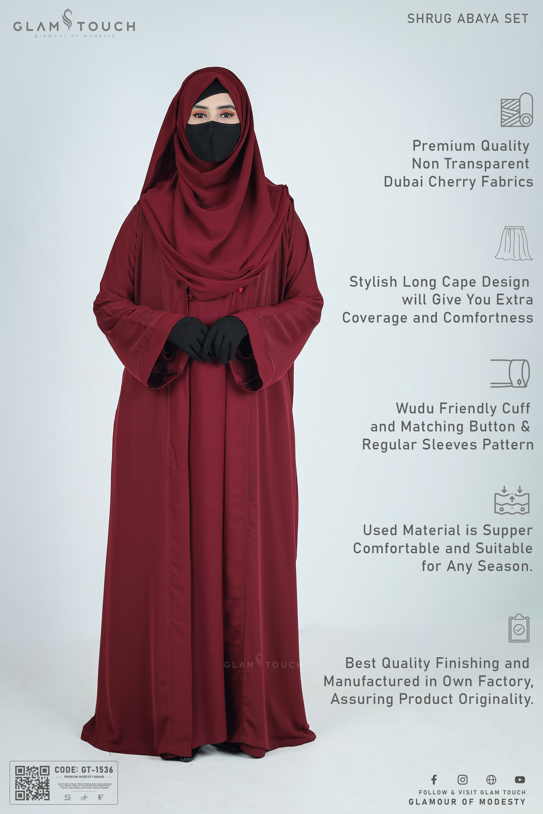 Glam Touch Premium Shrug Abaya 3 Part Set