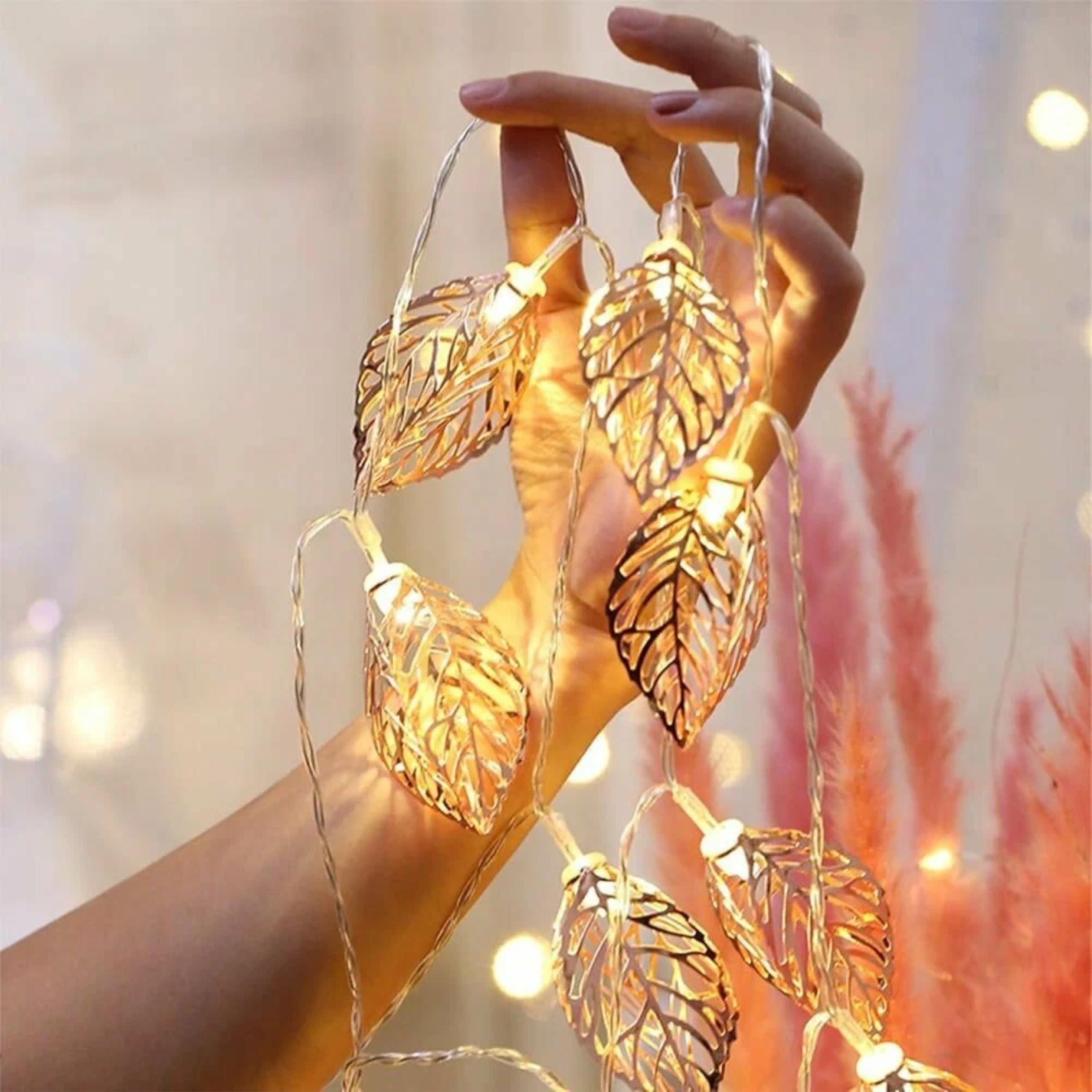 Illuminate your home, room, or party with these Golden 3D Leaf Metal Fairy String Lights. Featuring 20 golden leaves and 20 bright LED bulbs, this elegant decorative light creates a warm and cozy atmosphere. Perfect for weddings, parties, or as a charming home decor accessory. Easy to use, durable, and a perfect gift for friends and family.