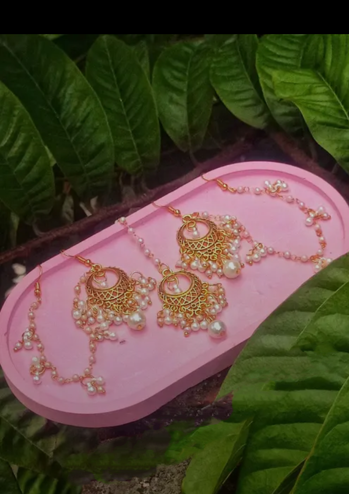 Gorgeous party wear antique golden necklace and earring set for girls and woman. - Gold