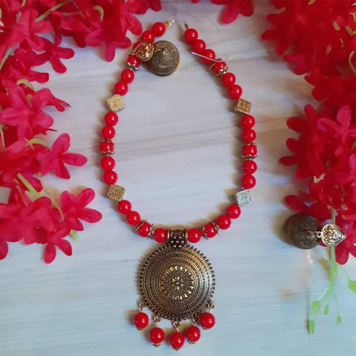 Gorgeous Party Wear Antique Silver locket Pendant Necklace / Chain Necklace / Choker Necklace for Women / Jewelry set for women Necklace - Multicolor