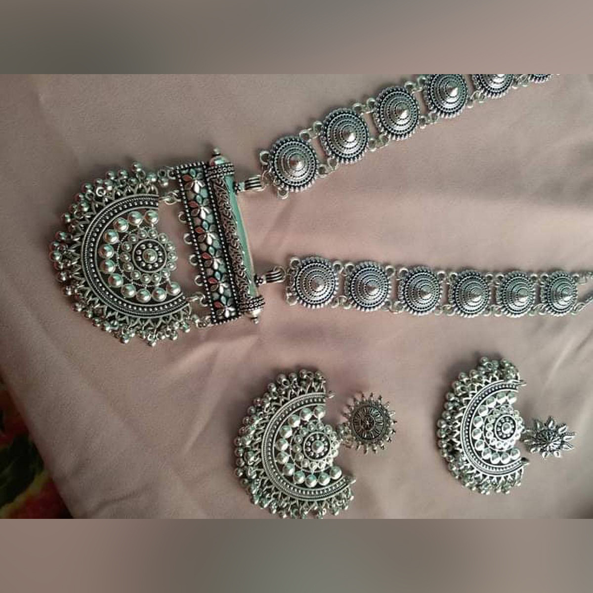 Gorgeous Party Wear Antique Silver locket Pendant Necklace / Chain Necklace / Choker Necklace for Women / Jewelry set for women Necklace - Multicolor