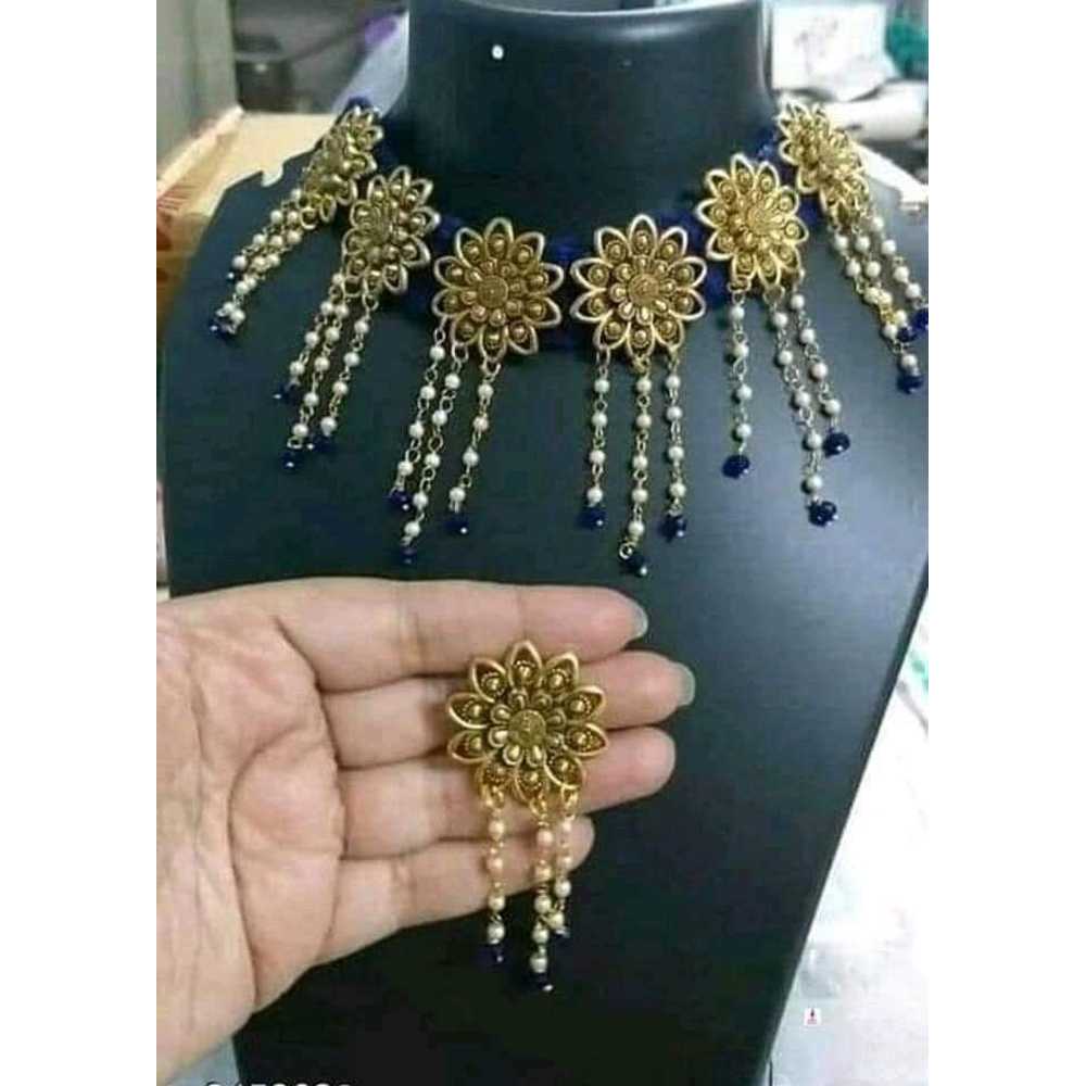 Gorgeous Party Wear Antique Silver locket Pendant Necklace / Chain Necklace / Choker Necklace for Women / Jewelry set for women Necklace - Multicolor