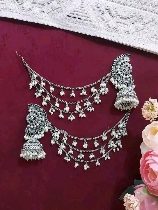 Gorgeous party wear antique silver necklace and earring set for girls and woman. - Silver