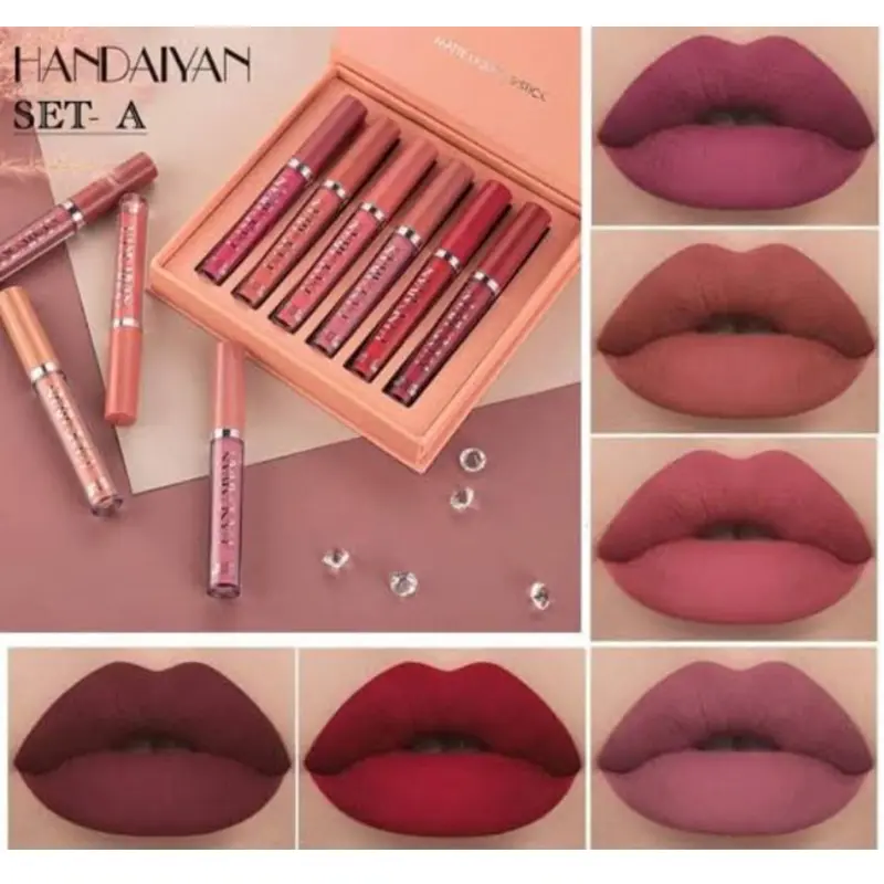Product details of HANDAIYAN 6 Colors Long Lasting Velvet Lips Tint Liquid Lipsticks Waterproof Non-Stick Cup Lipgloss Gift Set (A)