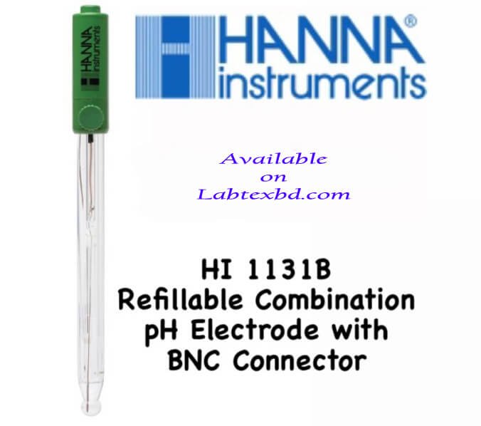Hanna pH Electrode HI1131b Refillable for Bench Top pH Meter HI2211, combination pH electrode for general laboratory purposes and beer testing.