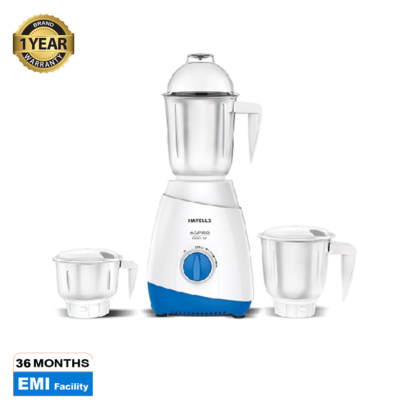 Havells Energia , 600w 3 SS Jars Light Blue- White Mixer Grinder - Blue