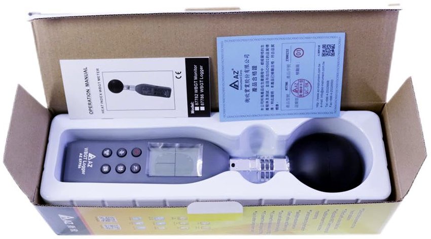 AZ87786 Handheld WBGT Data Logger Wet Bulb Globe Temperature Meter WBGT Meter with Data Logger Heat Index Checker. The 87786 AZ Portable WBGT Recorder could be operated by industrial hygienists, athletes, and the military to determine appropriate exposure levels to high temperatures. Military agencies, OSHA, and many nations use the WBGT as a guide to manage workload in direct sunlight.