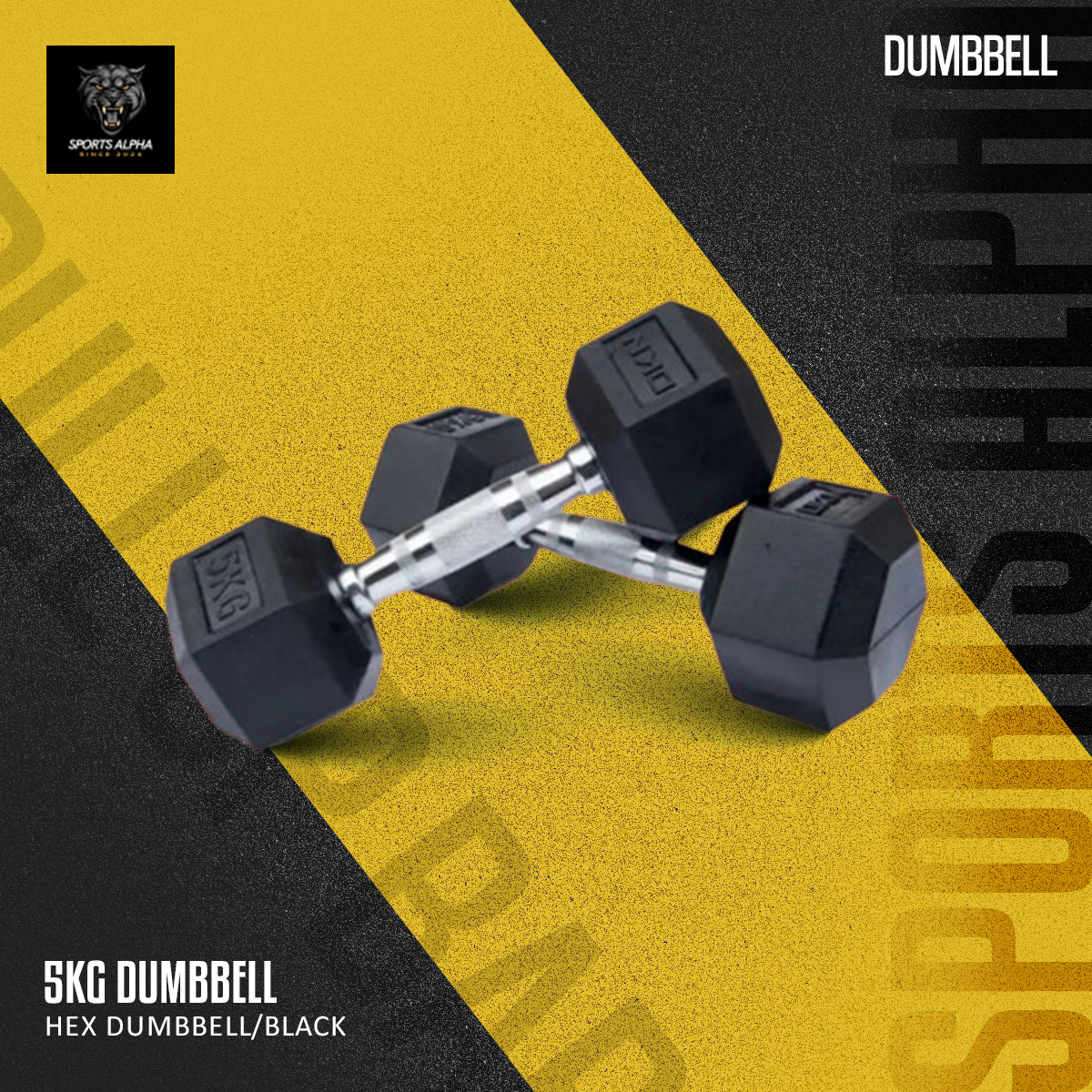 Add the Sports Alpha Hex Dumbbell Pair (5 kg each) to your fitness routine and build strength with confidence.