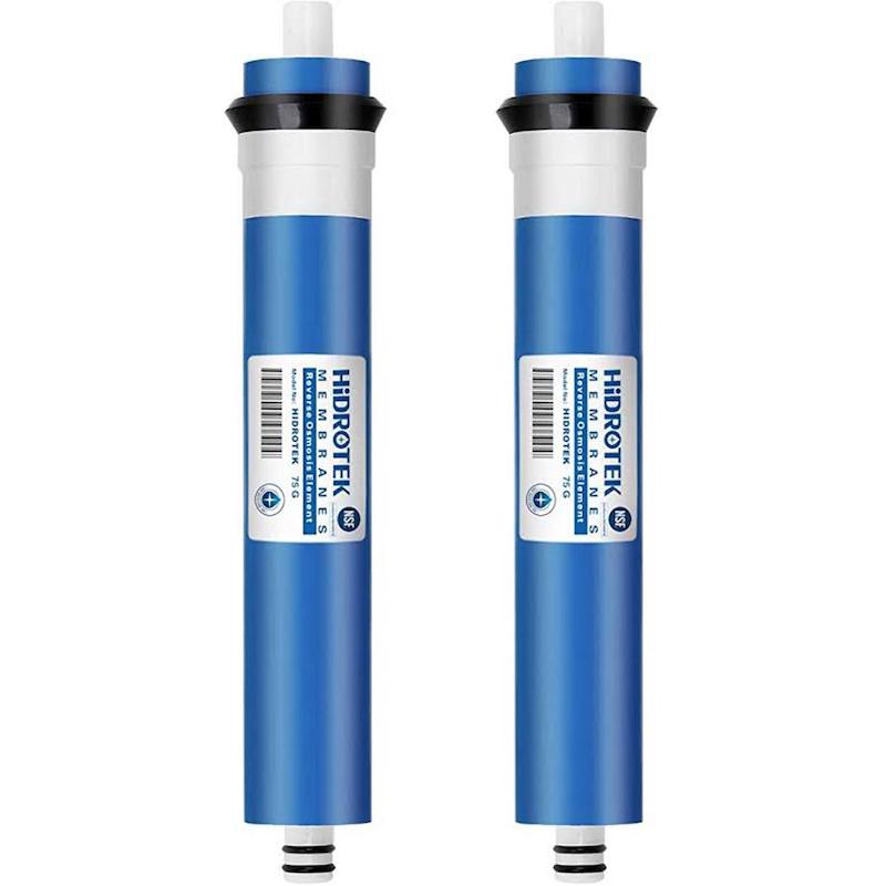 Brand of Hidrotek RO 75 GPD Membrane. Technology from USA What is dimension of the Geekpure 75GPD Ro membrane? It is standard size ( Membrane Dimensions: 11. 75" Overall Length, 1. 75" Diameter), and Fits all Standard 2" ID Membrane Housings. What is the life time? Our suggestion is 24 months for most tap water (200-500ppm).usually, you replace membrane depends on usage amount and feed water quality. if tap water is very good quality (200ppm or less), you may replace the membrane per 36months. if hard water area, someone replace membrane 6months or 12months. it is time to replace if flow rate is too less or membrane is cloged. Could i use it if my water Total Dissolved Solids is over 1000 ppm or well water? Yes, you can use it. even TDS reach 2000 ppm. but you should replace membrane every 12 months or more frequently.1000ppm is our suggestion. Can this be used for brackish water(5000ppm) or ocean water with high salinity(35000ppm)? No. it is just designed for residential tap water use. if you need Ro membrane for brackish water or ocean water and industrial use
