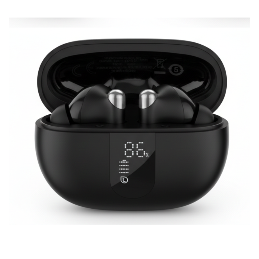 The smart charging case comes with an LED digital display to show battery status. Enjoy up to 7 hours of playback (ANC OFF) and 6 hours (ANC ON) on a single charge. The earbuds also support dual device connection, allowing you to connect two phones simultaneously.