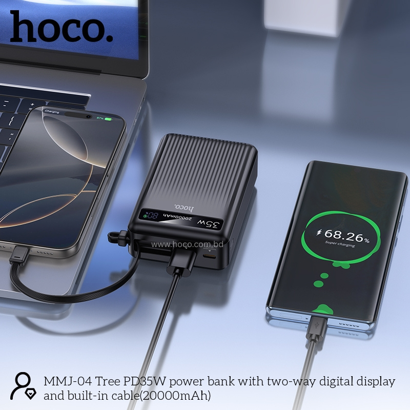 HOCO MMJ04 PD35W Fast Charging Power Bank With Two-Way Digital Display and Built-in Cable - Black - Black