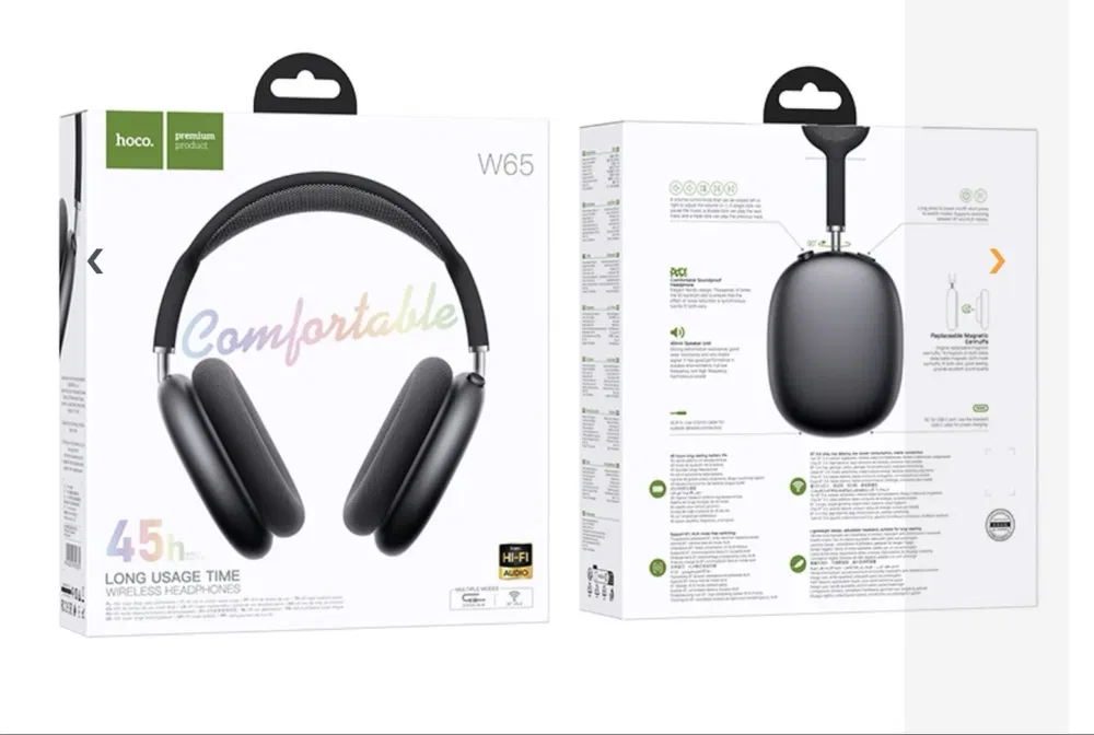 The Hoco W65 over-ear headphones strike a perfect balance between comfort, battery performance, and modern features. Powered by Bluetooth 5.4 (JL7006F4 chip), they offer fast, stable connections ideal for music, calls, and media streaming.