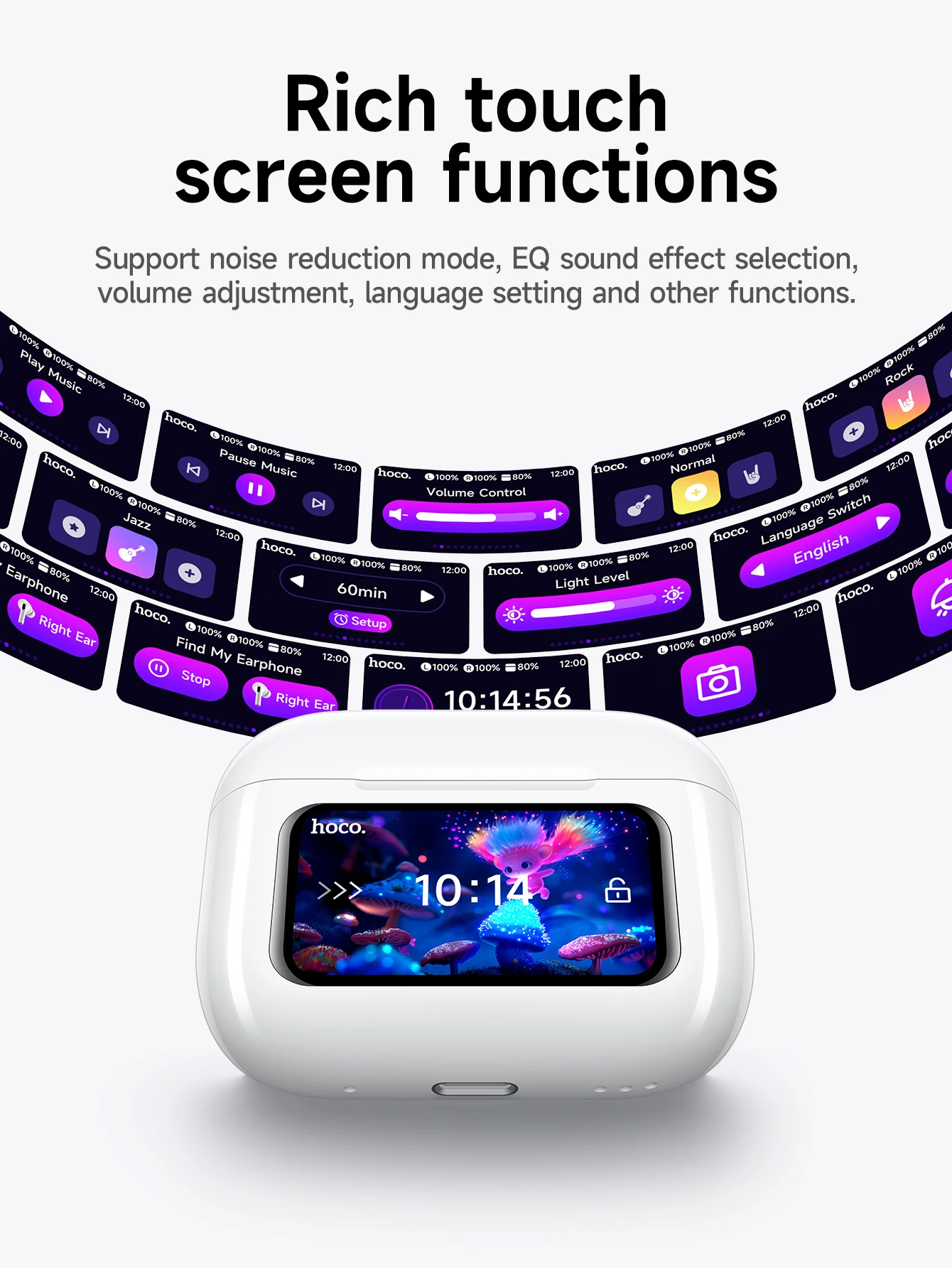 Upgrade your audio experience with the Hoco EW72 Lite — a feature-packed, stylish TWS earbud solution designed for daily life in Bangladesh. Equipped with Bluetooth 5.4 and JL AC6983D4 chipset, these earbuds deliver stable, lag-free connection and seamless pairing. The standout feature is the full-color LCD touch screen on the charging case, letting users check battery levels, set functions, control music, and even check time directly on the case from a single tap.