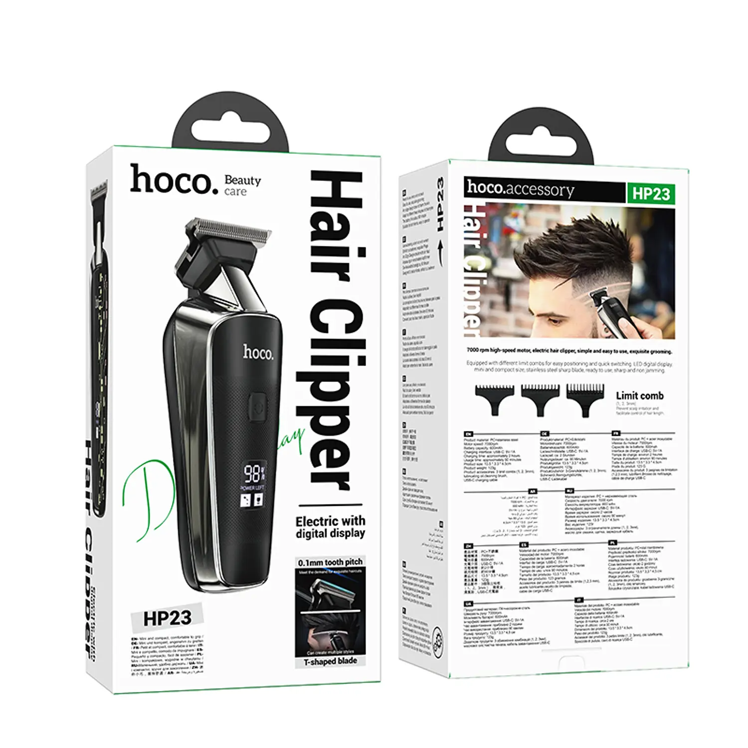 The Hoco HP23 Diamond Electric Hair Clipper is a compact yet powerful grooming tool designed for modern Bangladeshi users who demand precision and convenience. Its robust 7,000 RPM motor ensures smooth, salon-quality trims, while the 600 mAh battery delivers up to 90 minutes of cordless use—perfect for home grooming or travel.