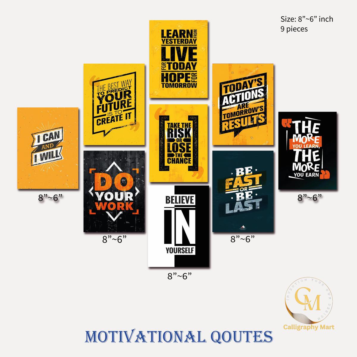 Home Decor 9pcs English Motivational Quotes Premium Wallboard Decoration