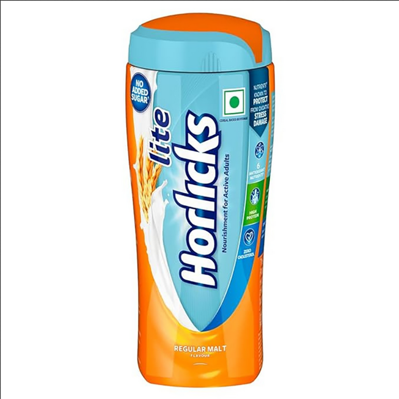 Horlicks Lite Regular Malt Health & Nutrition Drink for Adults, 450g Jar (indian) | High Protein Adult Health Drink for Immunity, No Added Sugar
