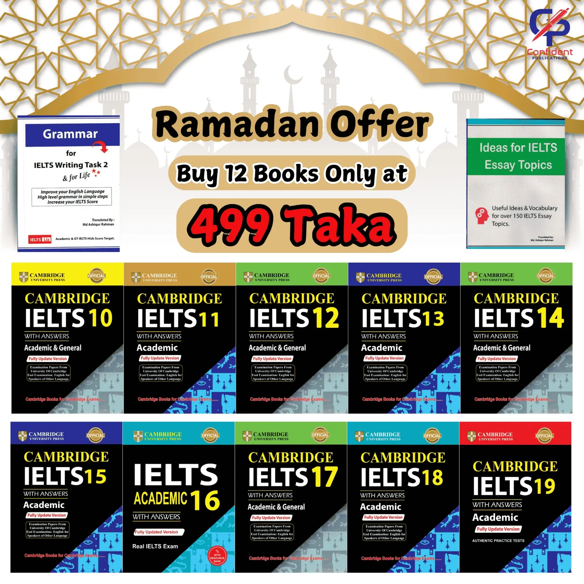 Cambridge IELTS 10-19 (Academic) হলো Most Authentic Practice Book Series, কারণ এতে Past Exam Questions রয়েছে। প্রতিটি বইতে 4টি Full-Length Academic Test দেওয়া আছে, যা Listening, Reading, Writing & Speaking কভার করে।