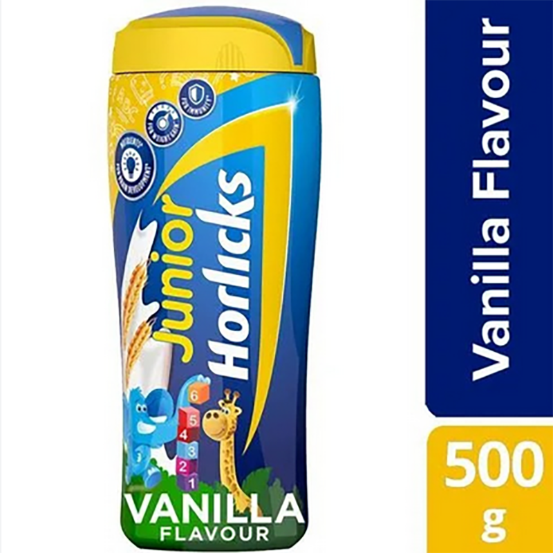India-500g Horlicks Junior Health & Nutrition Drink - With DHA & Nutrients Vanilla Flavour 500g Jar