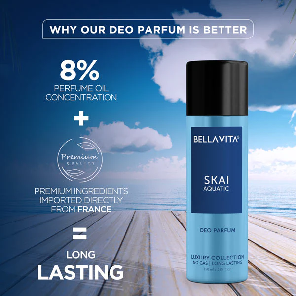 Reach for the sky and be limitless with SKAI Aquatic Deo Parfum. Top notes of citrus bergamot, coriander, mandarin and pineapple give you an instant burst of energy while heart notes of clary sage, lavender, leather and pink pepper keep you cool and collected as you take on the day. Patchouli at the base keeps you grounded and adds confidence as you reach for the stars.
