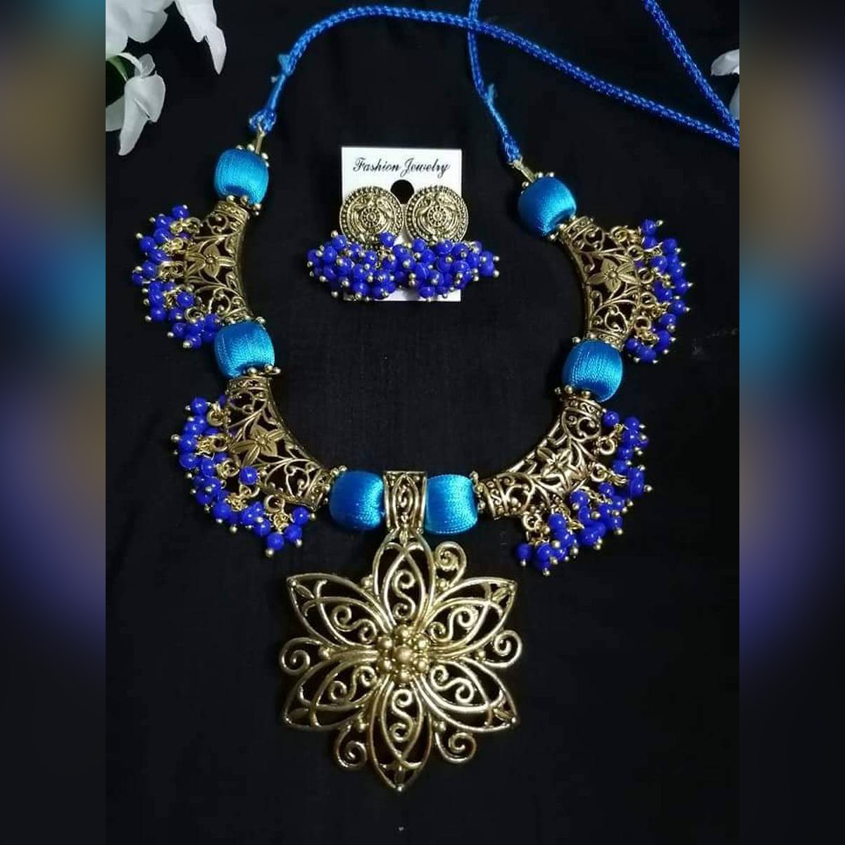 Jaypuri Traditional Antique Oxidised Choker Necklace Jewellery Set - Multicolor