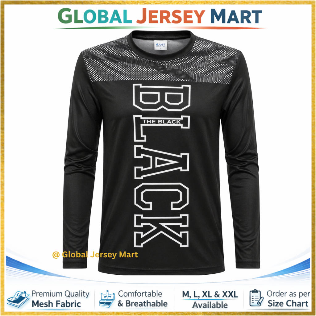 Level up your sportswear with the Just Collection “The Black” Full Sleeve Jersey 2024/25—a bold, modern training top designed for both performance and street style. This jersey comes in a sleek all-black base with a standout vertical “BLACK” graphic print and a sporty pixel-texture pattern across the shoulder panel for a premium look.