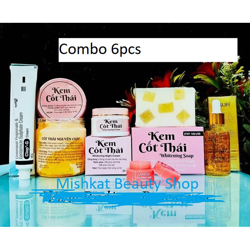 - Kem Cốt Thái Whitening Cream: Brightens and moisturizes for all-day radiance