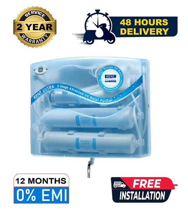 Kent presents the state-of-the-art 3-stage Ultra-Violet water purification system 'Kent ULTRA' that protects drinking water from bacteria and viruses efficiently. Resulted from the latest innovations in UV technology, it marks advancement over common UV water purifiers. Designed with a multi-stage filtration system, it uses Sediment filter and Activated Carbon filter to enhance capability for eliminating micro-organisms. Kent Ultra has been designed for functional superiority. Compare it with any other UV system and nothing will come close to it. And that's obvious as it comes from India's foremost name in water purifiers.